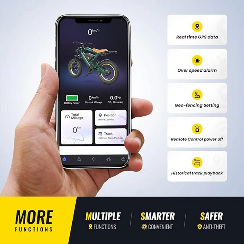 This electric bicycle stands out in the all-terrain category not just for its speed and range but also for its versatile design that caters to both mountain and urban environments. Whether you're commuting or exploring, this bike is engineered for performance and comfort.