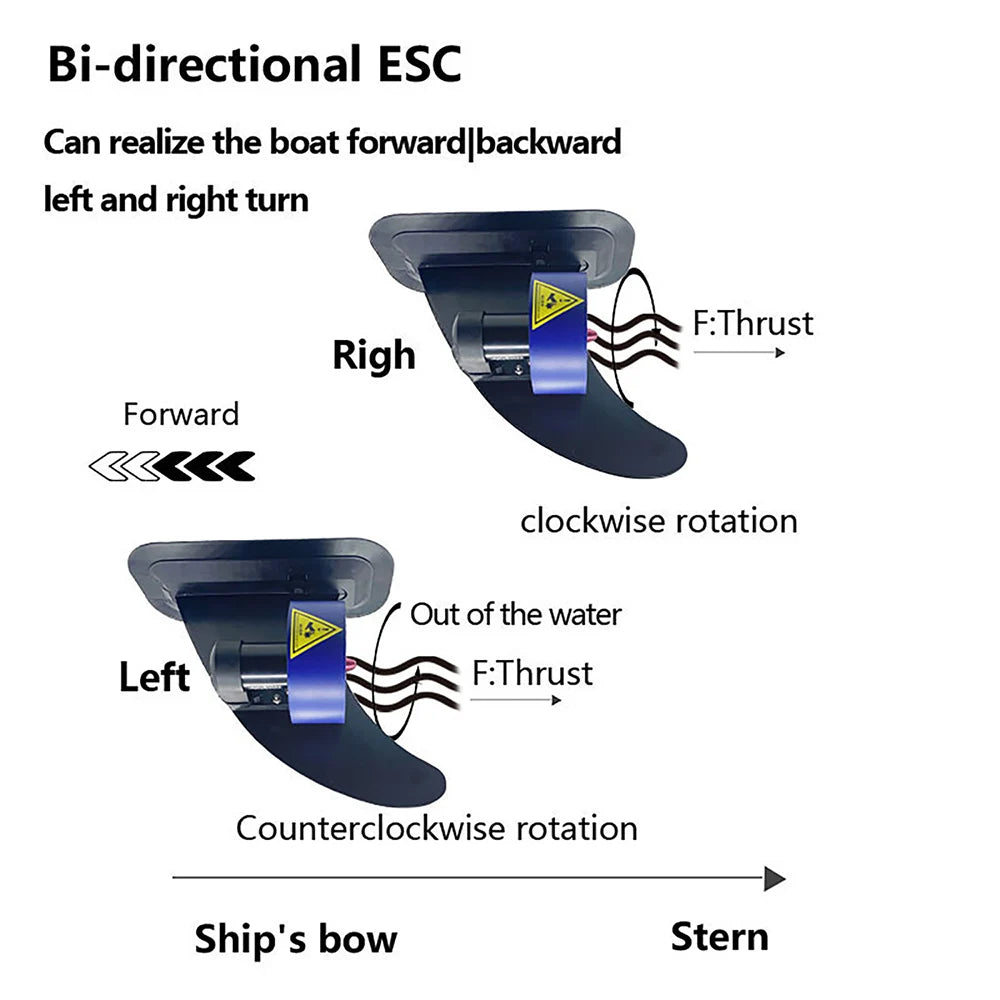 ApisQueen 12 to 24 Volt Underwater Thruster U5 Set Total Thrust 14 Kilograms Brushless Motor with RC and ESC for Kayaks and Fishing Boats